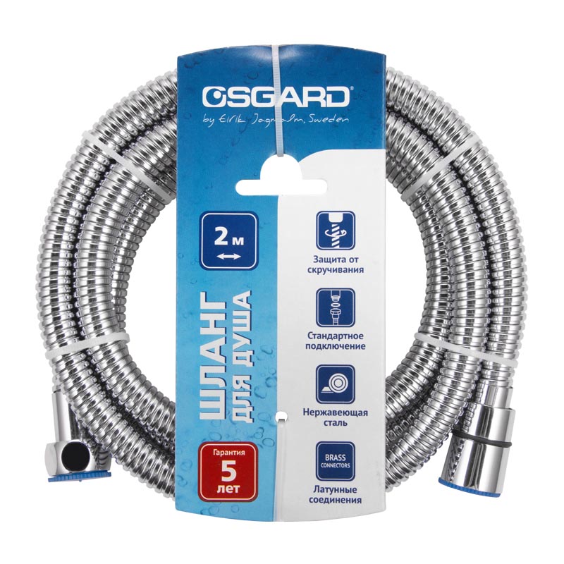 Оплетка из нержавеющей стали с гальваническим покрытием, внутренний канал из EPDM-каучука, латунные соединения, защита от скручивания.