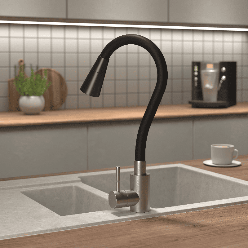 Главная Каталог Смесители для кухни С гибким изливом Смеситель для кухни GRON HORN ЧЕРНЫЙ