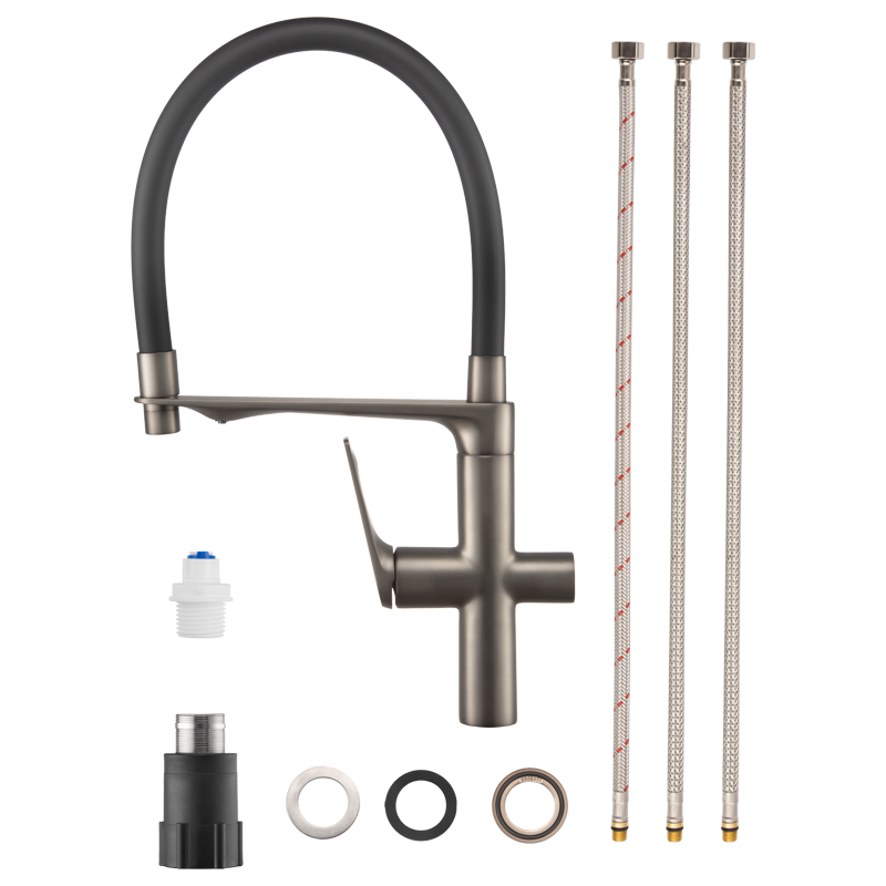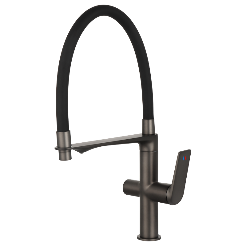 Главная Каталог Смесители для кухни С гибким изливом Смеситель для кухни NORA ВОРОНЕНАЯ СТАЛЬ