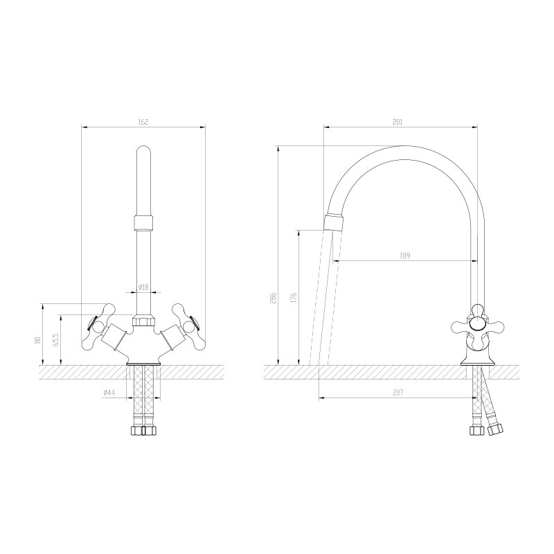 Смеситель 1 шт., гибкая подводка 1 компл., крепеж 1 компл., паспорт изделия 1 шт.