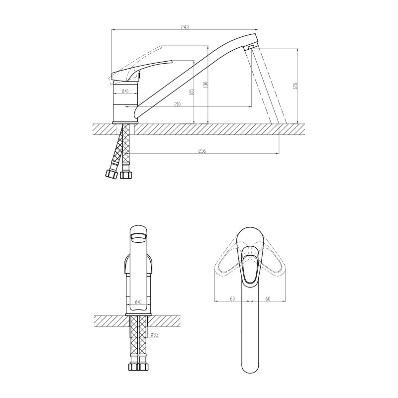 Смеситель 1 шт., гибкая подводка 1 компл., крепеж 1 компл., паспорт изделия 1 шт.