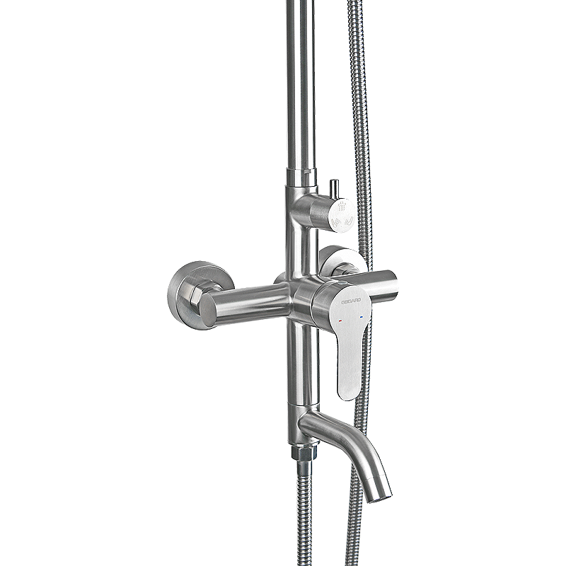 Главная Каталог Комплекты для душа Душевые стойки с тропическим душем Душевой гарнитур с лейкой и тропическим душем HUGG